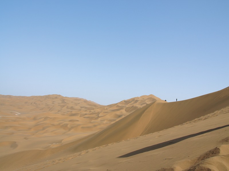 更素潔與寂靜。據說,《西遊記》中所描寫的流沙河就是這裡。白沙湖岸邊,是大面積高山丘陵和起伏的高山。高山是沙山,沙山是銀白色的,,銀白色的細沙潔白柔和,猶如白綢。因沙山倒映水中、不知是山映水中,還是水中有山,堪稱一絕。